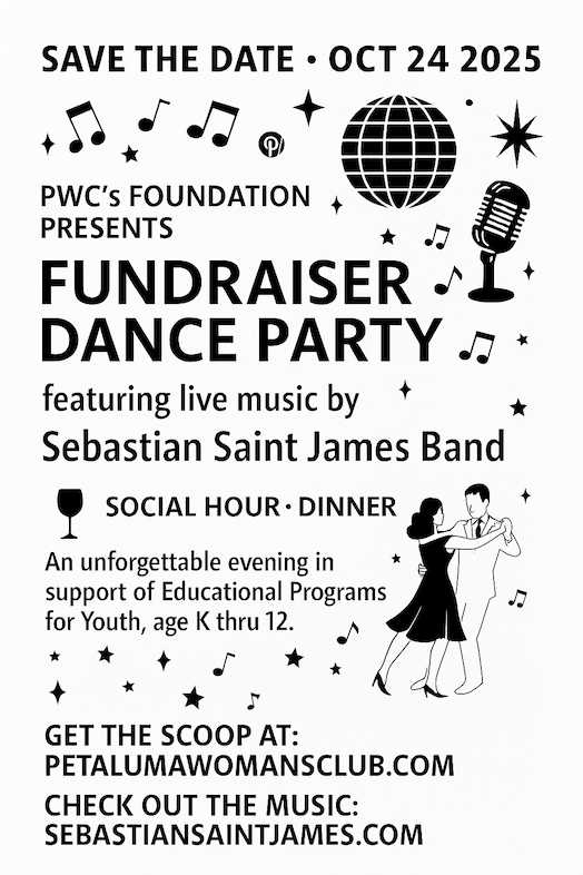 Petaluma Womans Club 518 B Street, Petaluma, CA, United StatesPWC's Foundation Presents: Fundraiser Dance Party Friday, October 24, 2025 Petaluma Woman's Club An unforgettable evening in support of Educational Programs for […]